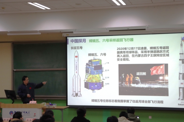 报告会上,高扬研究员以饱满的热情和详实的资料,向与会师生深情讲述了“两弹一星”的辉煌历程和背后鲜为人知的故事。他围绕四个主题内容展开,包括两弹一星计划的历史背景与伟大成就、中国航天的快速发展与现状、航天领域的变革和新时代所面临的挑战,以及空间应用中心在空间探索研究方面所取得的最新进展和未来规划。